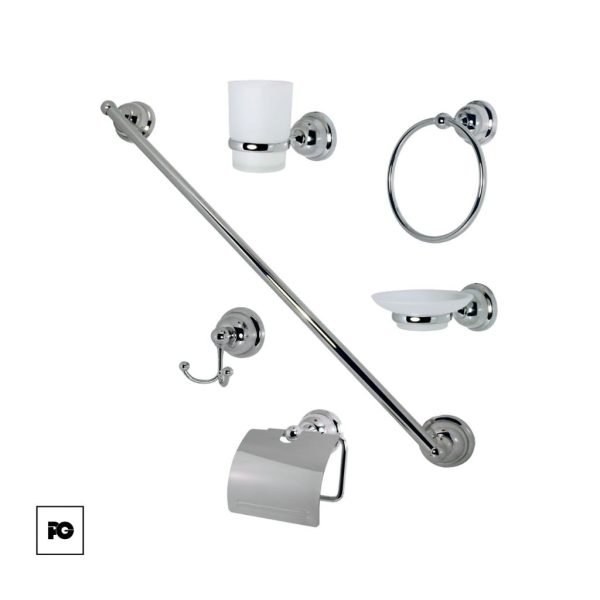Fabricado con materiales de alta calidad y un acabado cromo brillante, incluye todo lo necesario para tener tu baño ordenado y con un toque moderno.