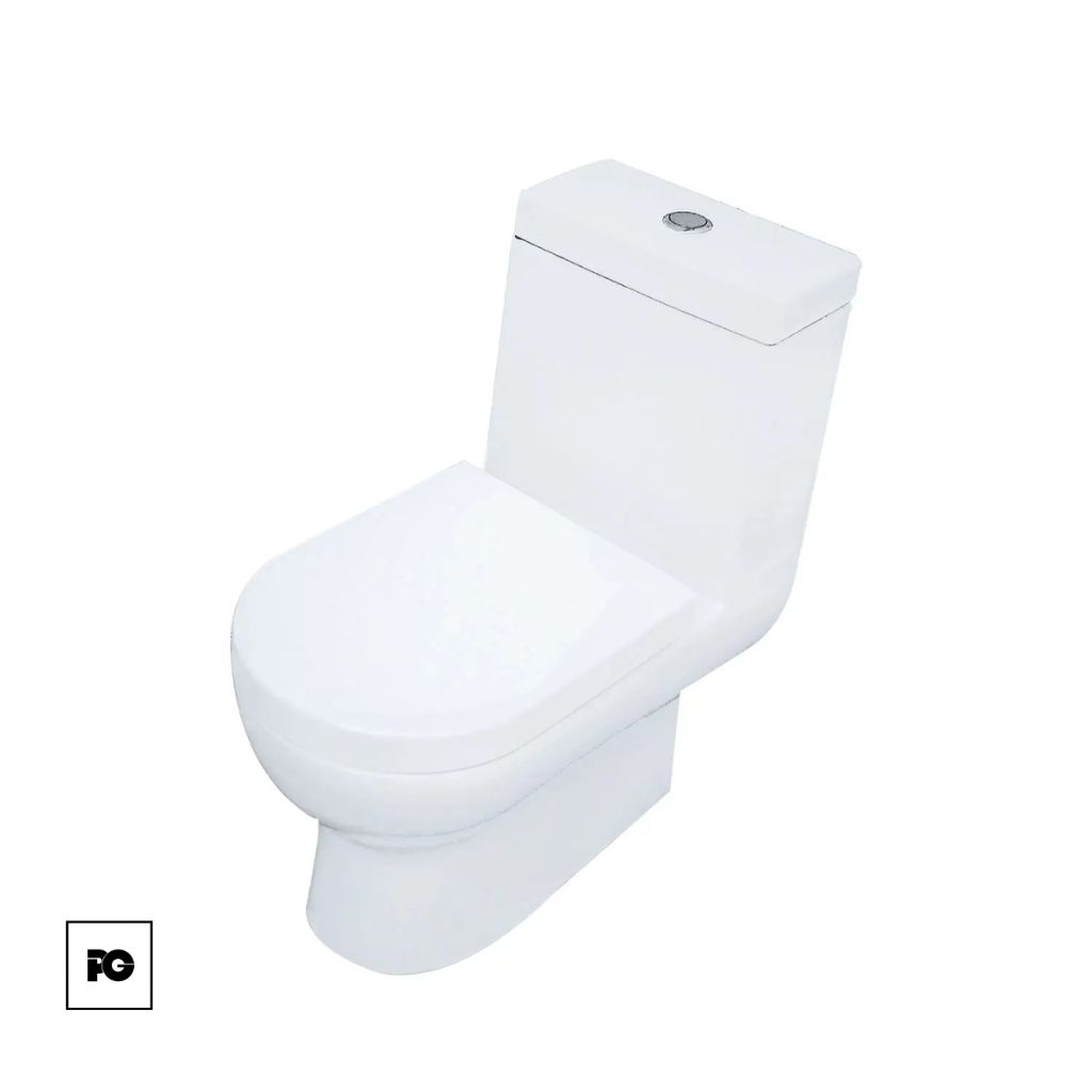 Fabricado en cerámica esmaltada, ecológico, con descarga eficiente de 5 litros, botón push superior y asiento de cierre lento. Incluye tapa tanque, asiento y válvulas.